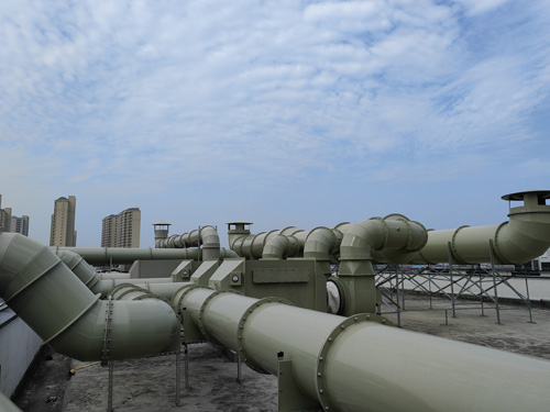 實驗英文室有機廢氣治理 → 生物炭濾過器 → 引風機電機 → 排卸